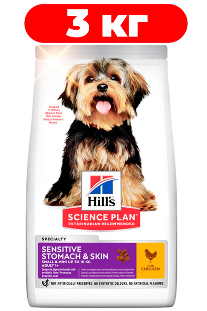 Cухий корм для собак міні і малих порід з куркою Hills Science Plan Adult Small & Mini Sensitive Stomach & Skin Chicken 3кг