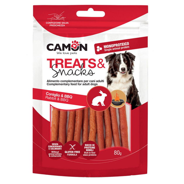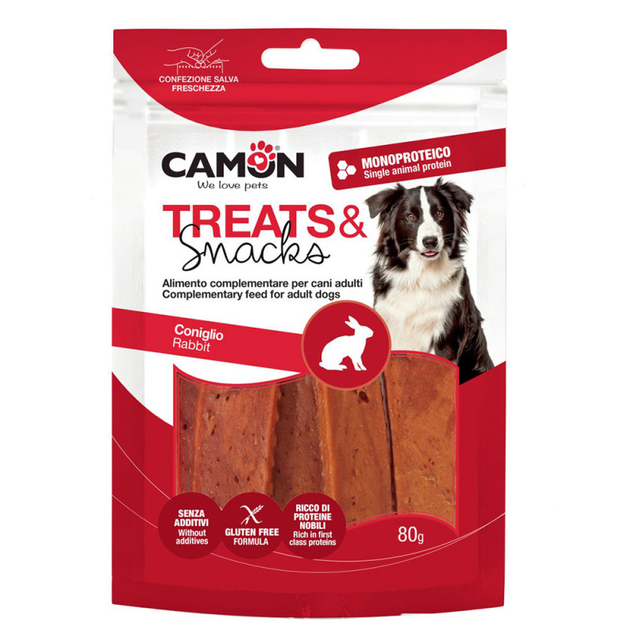 Ласощі для собак для дресирування М'ясні смужки з кролика з копченим присмаком 11,5 см CAMON 80 г