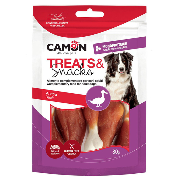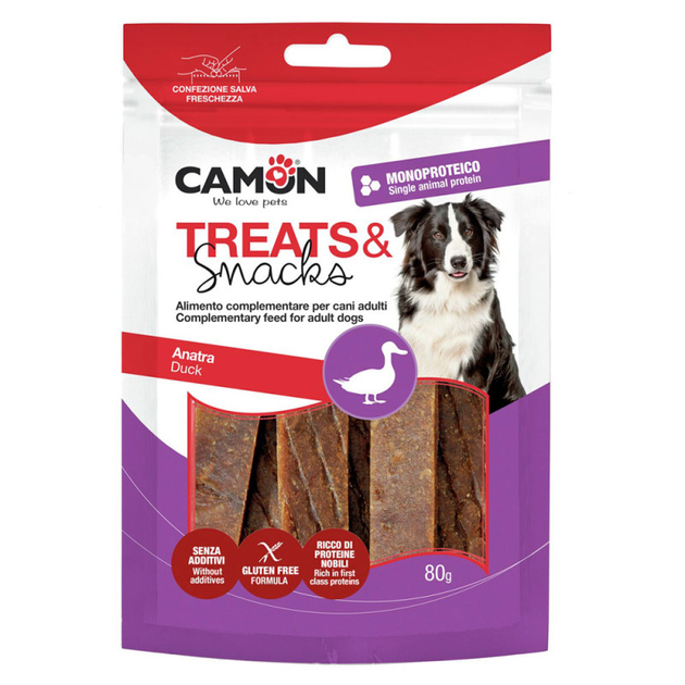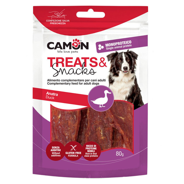 Ласощі для собак для дресирування та заохочення В'ялене качине м'ясо 8 см CAMON 80 г