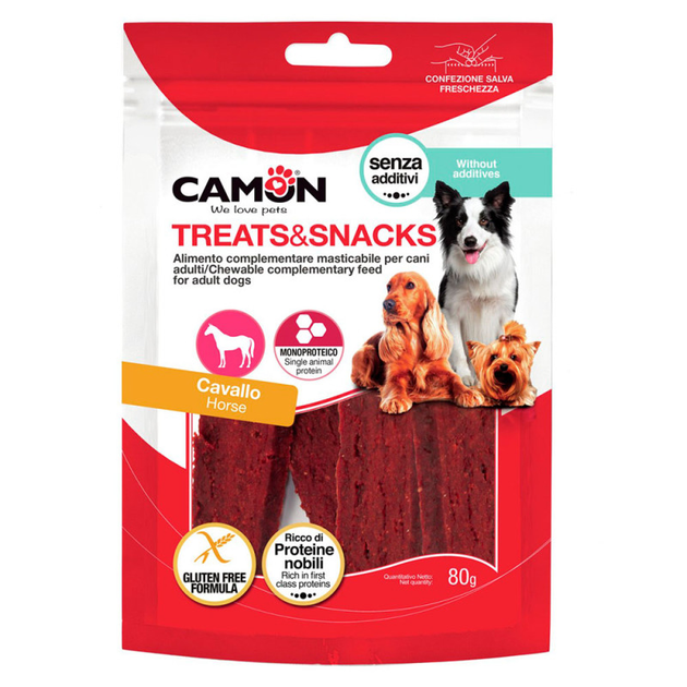Ласощі для собак для дресирування та заохочення В'ялене м'ясо конини 11 см CAMON 80 г