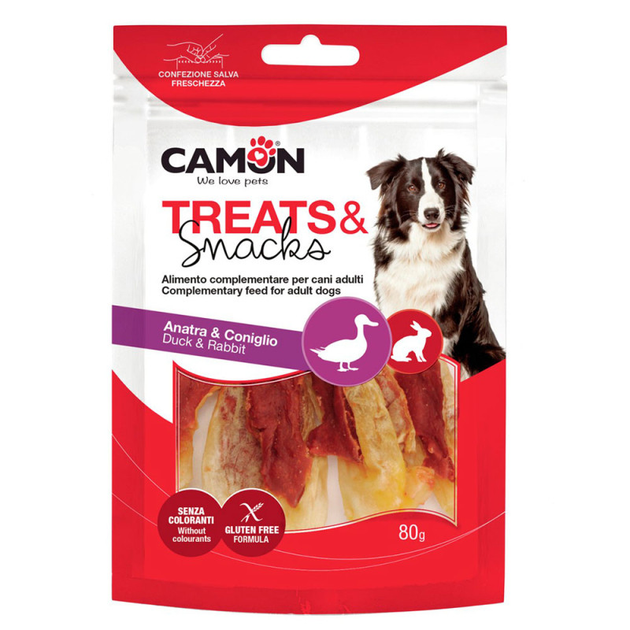 Ласощі для собак для дресирування та заохочення Кролячі вушка з качкою 9 см CAMON 80 г