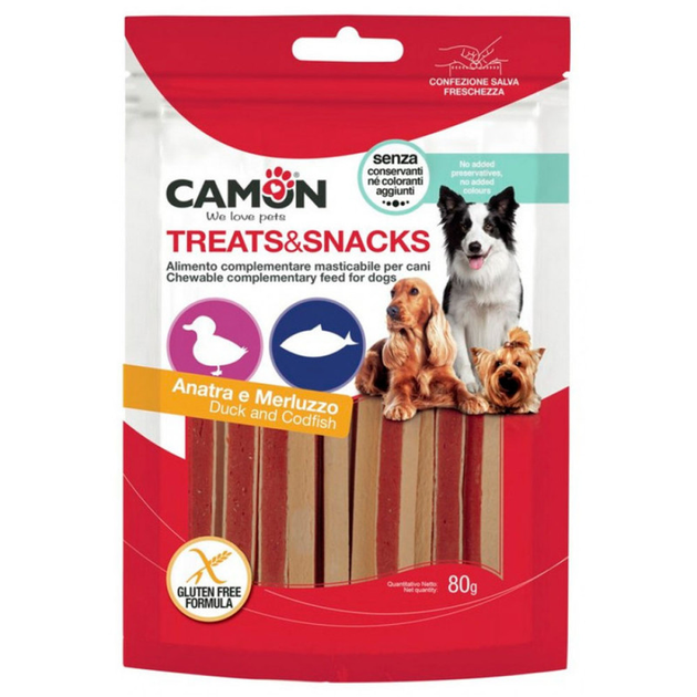 Ласощі для собак для дресирування та заохочення Сендвіч з качкою та тріскою 11х0,5 см CAMON 80 г