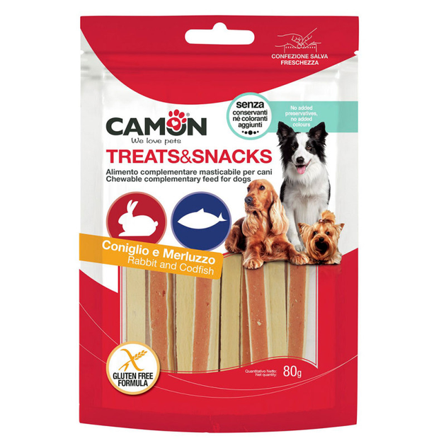 Ласощі для собак для дресирування та заохочення Сендвіч з кроликом та тріскою 11х0,5 см CAMON 80 г