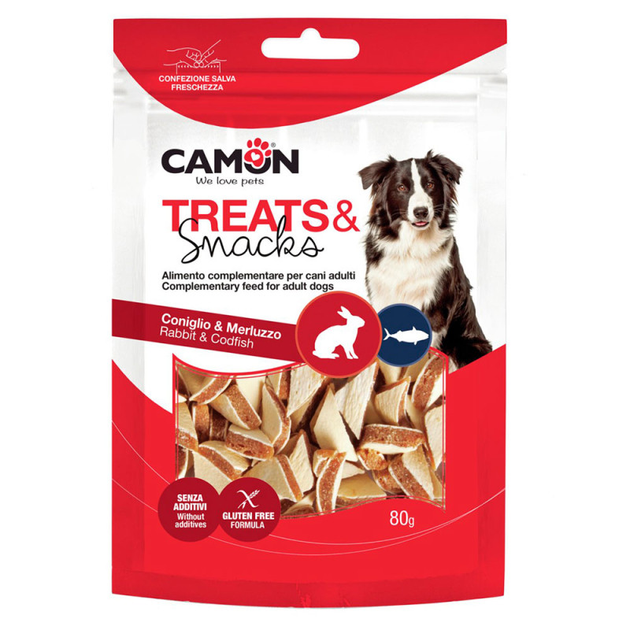 Ласощі для собак для дресирування М'ясні сендвічі трикутники з кроликом та тріскою 1,5х0,5 см CAMON 80 г