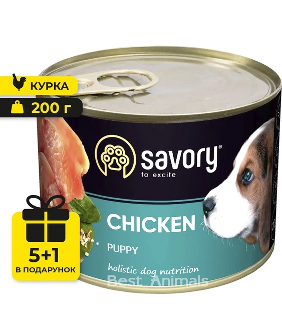Вологий корм з куркою Savory Сейворі консерва для цуценят 200 г 5+1 шт (4820232630549)