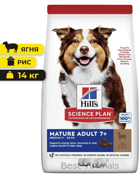 Сухий корм для собак середніх порід 11-25 кг Hill's Хілс з ягням та рисом для собак старше 7 років 14 кг (051742026152)