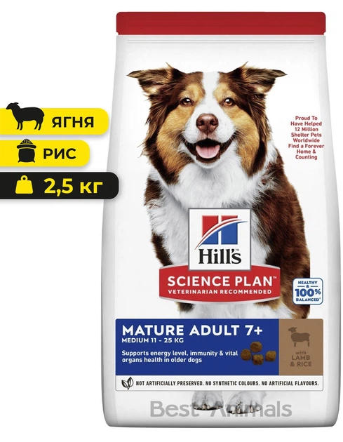 Сухий корм для собак середніх порід 11-25 кг Hill's Хілс з ягням та рисом для собак старше 7 років 2,5 кг (052742025278)