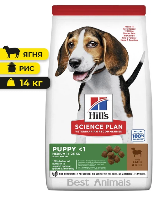 Сухий корм для цуценят середніх порід 11-25 кг Hill's Хілс з ягням та рисом 14 кг (052742025735)