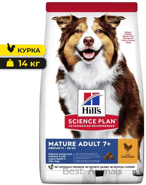 Сухий корм для собак середніх порід 11-25 кг Hill's Хілс з куркою для собак старше 7 років 14 кг (052742026176)