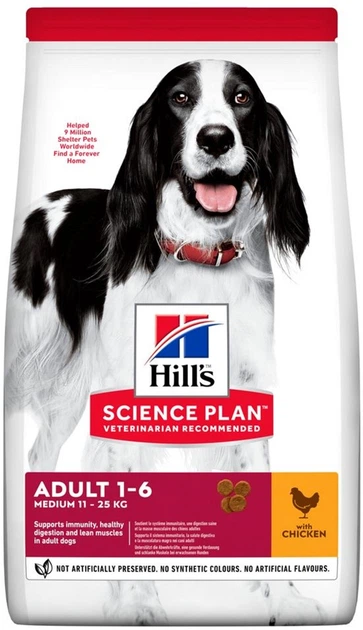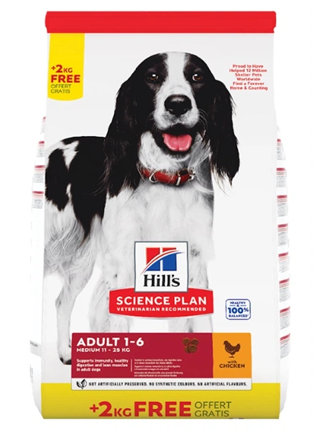 Сухий корм Hill's Science Plan Adult Medium для собак середніх порід з куркою 12+2 кг