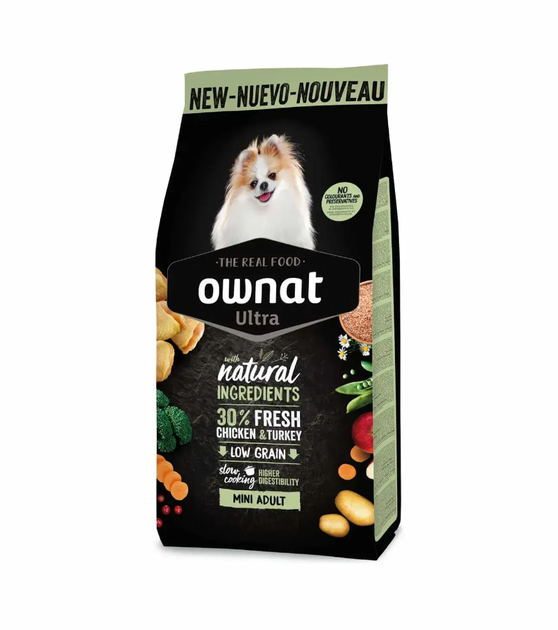 Сухий корм для собак малих порід OWNAT ULTRA MINI ADULT (низькозерновий) з куркою та індичкою - 3 кг