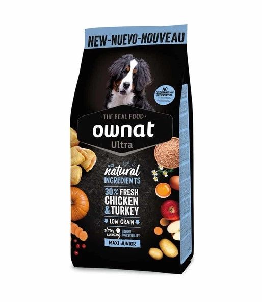 Сухий корм для цуценят великих порід OWNAT ULTRA MAXI JUNIOR (низькозерновий) з куркою та індичкою - 12кг