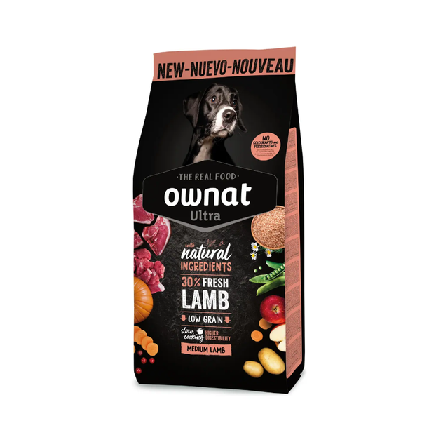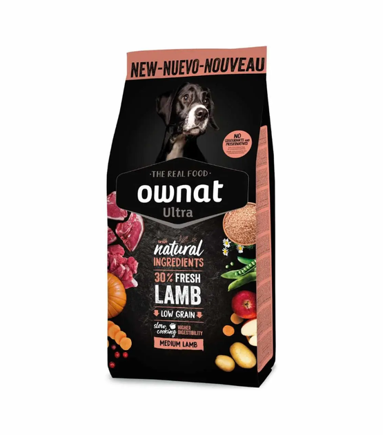 Сухий корм для собак середніх порід OWNAT ULTRA MEDIUM LAMB (низькозерновий) з ягням - 12кг
