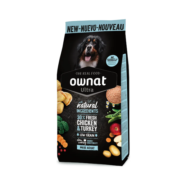 Сухий корм для собак великих порід OWNAT ULTRA MAXI ADULT (низькозерновий) з куркою та індичкою - 3 кг