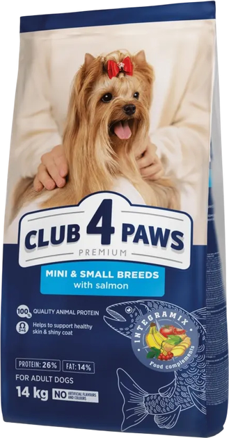 Повнораціонний сухий корм для дорослих собак малих та мініатюрних порід Club 4 Paws Premium З лососем 14 кг (B4531401) (4820