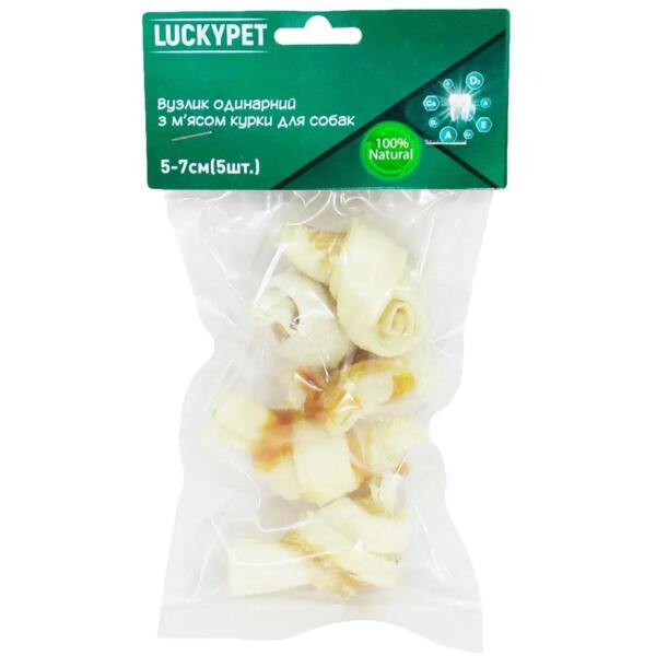 Ласощі для собак Lucky Pet Вузлик одинарний №1 з м'ясом курки 5-7 см 5 шт 4820268551177