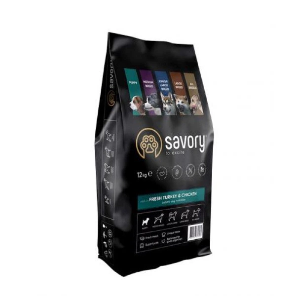 Savory Puppy багатий на Fresh Turkey & Chicken 12 кг сухий корм для цуценят (індичка та курка)