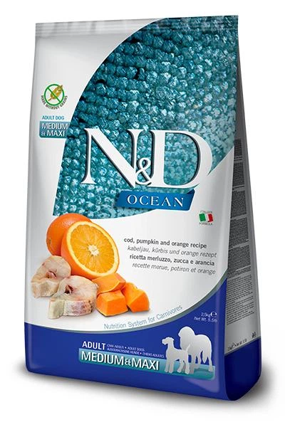 Беззерновий сухий корм Farmina N&D Grain Free OCEAN COD, PUMPKIN & ORANGE ADULT MEDIUM & MAXI для собак середніх і крупних п