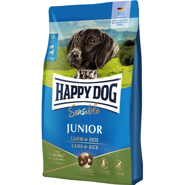 Сухий безглютеновий корм Happy Dog Sensible Junior Lamb&Rice - з ягням та рисом для юніорів середніх та великих порід віком