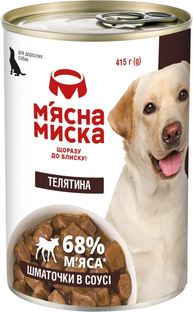Вологий корм для дорослих собак М'ясна Миска шматочки в соусі з телятиною 415 г (4820255192154)