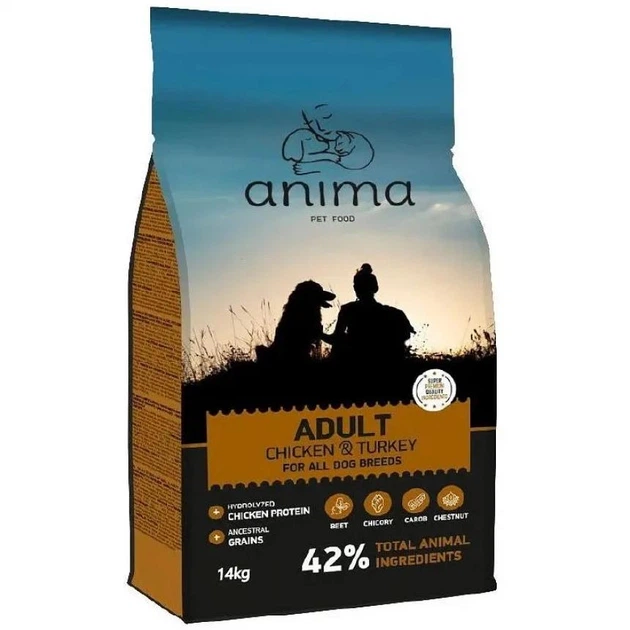 Сухий корм для дорослих собак Anima з куркою, індичкою та рисом 14 кг