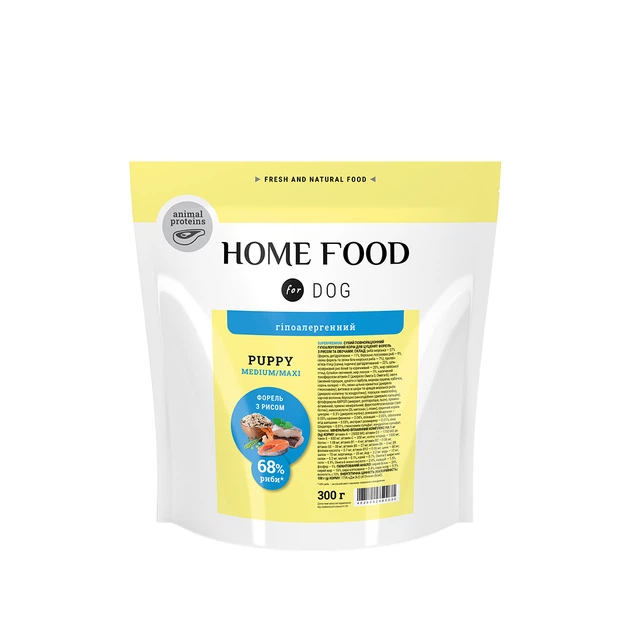 Сухий корм Home Food Puppy Medium & Maxi для цуценят середніх та великих порід собак форель рис 300 г (арт 2680030)