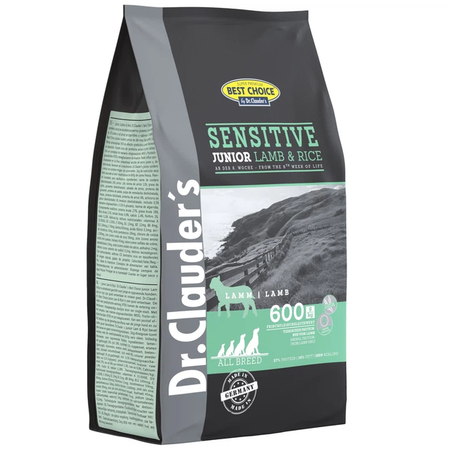 Сухий корм Dr.Clauder's Sensitive Junior Lamb & Rice 350 г для цуценят всіх порід з чутливим травленням та втратою апетиту.