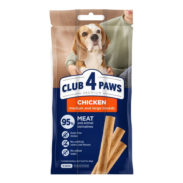 Ласощі для собак Club 4 Paws великих та середніх порід з куркою 12 г х 3 шт. (4820269145030)