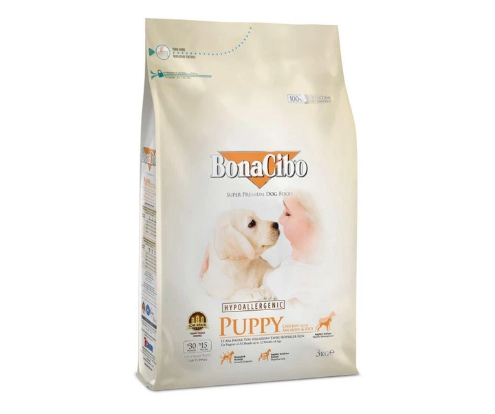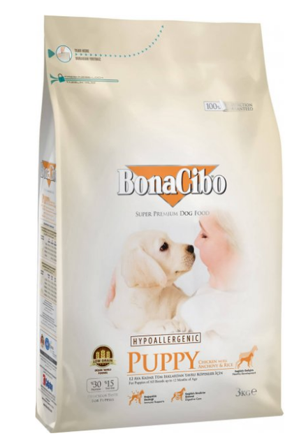 Сухий корм BONACIBO Puppy Chicken&Rice with Anchovy 3кг, для цуценят всіх порід, з куркою, анчоусами та рисом