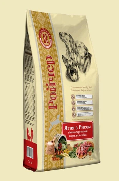 Ройчер сухий гіпоалергенній корм для дорослих собак з ягням і рисом 7,5 кг