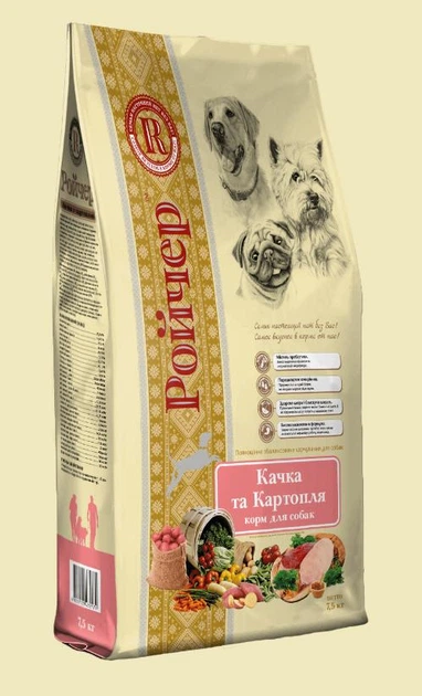 Ройчер сухий беззерновий гіпоалергенний корм для дорослих собак з качкою і картоплею 7,5 кг