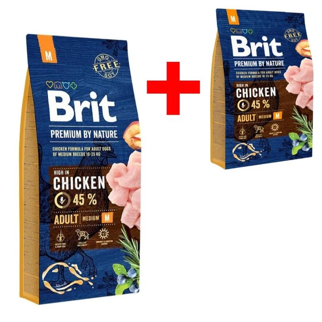 Бріт корм сухий для дорослих собак середніх порід вагою 10-25 кг Brit Premium Dog Adult M з куркою 15 кг + Подарунок Brit Pr