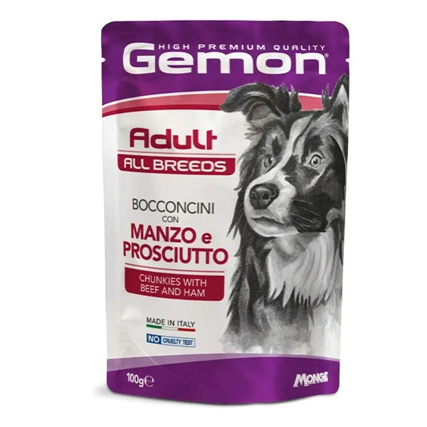 Вологий корм для собак Gemon Dog Wet Adult яловичина з шинкою 100 г