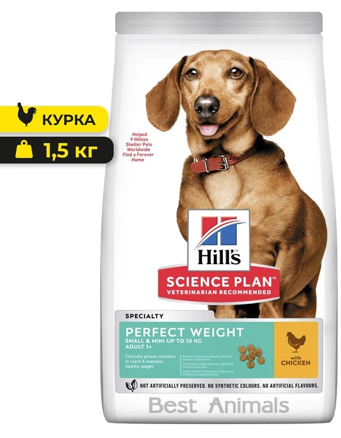 Сухий корм для собак малих порід до 10 кг Hill's Perfect Weight Хілс з куркою для контролю ваги 1,5 кг (052742024783)