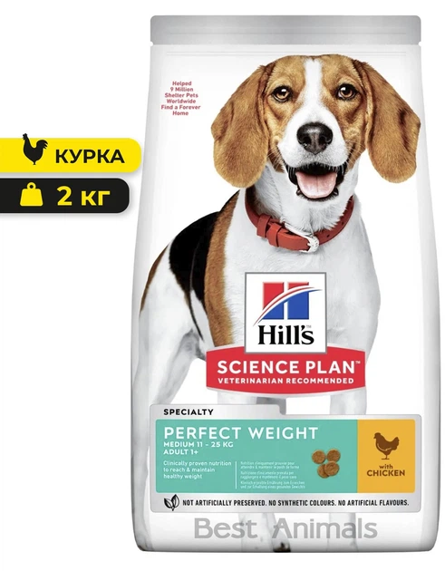 Сухий корм для собак середніх порід 11-25 кг Hill's Perfect Weight Хілс з куркою для контролю ваги 2 кг (052742025209)
