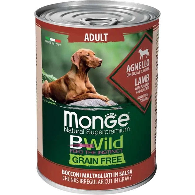 Вологий корм для собак Monge Dog Wet Bwild Grain Free Adult ягня, гарбуз та цукіні 400 г (70012614)