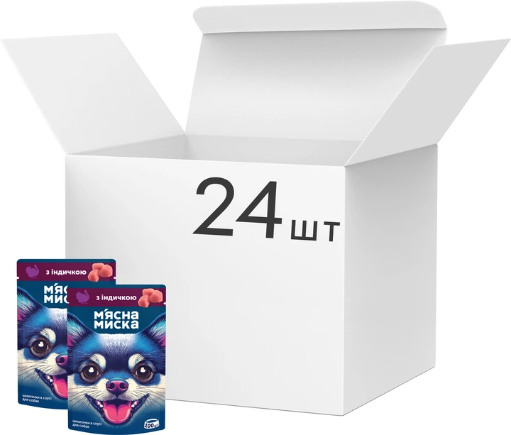 Упаковка вологого корму дорослих собак М'ясна Миска шматочки в соусі з індичкою 100 г x 24 шт (4820255194783)