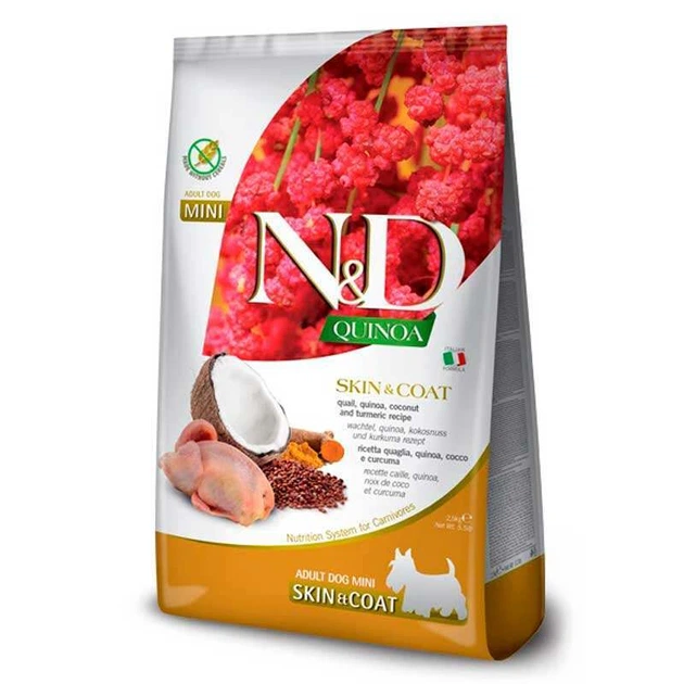 Фарміна сухий корм для собак N&D QUINOA SKIN & COAT ADULT MINI дієтичне харчування при харчовій алергії з перепелом 7 кг