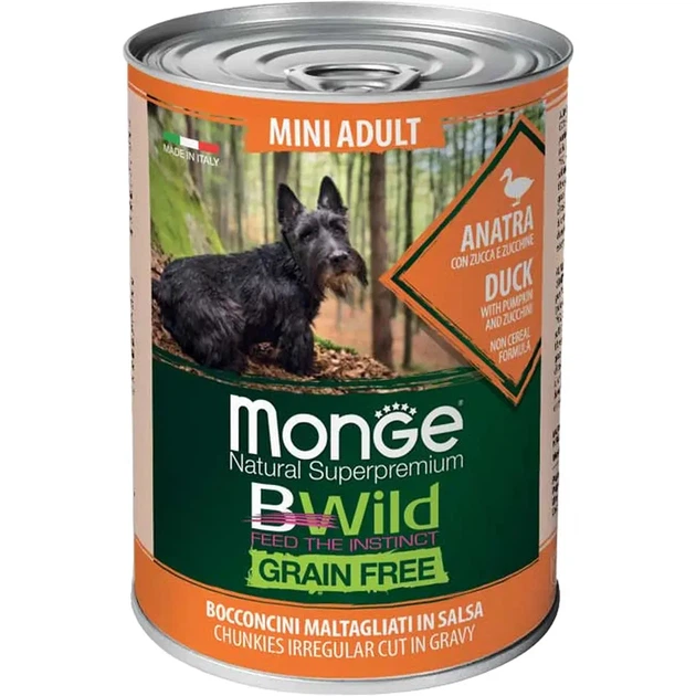 Вологий корм для собак Monge Dog Bwild Grain Free Mini Adult качка, гарбуз та цукіні 400 г (70012638)