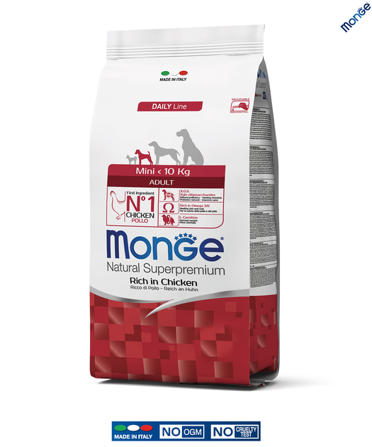 Сухий корм для дорослих собак маленьких пород Monge Dog Mini Adult Монж зі смаком курки та рису 3кг.