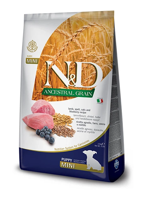 Низькозерновий сухий корм Farmina N&D, для цуценят дрібних порід, ягня з чорницею, 7 кг