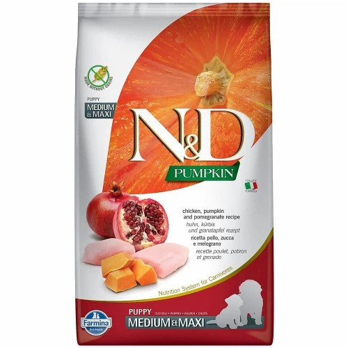 Беззерновой сухий корм Farmina N&D, для щенят середніх і великих порід, курка з гарбузом і гранатом, 12 кг