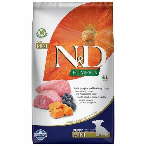 Беззерновий сухий корм Farmina N&D, для цуценят дрібних порід, ягня з гарбузом і чорницею, 7 кг