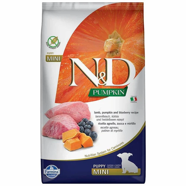 Беззерновий сухий корм Farmina N&D, для цуценят дрібних порід, ягня з гарбузом і чорницею, 2.5 кг