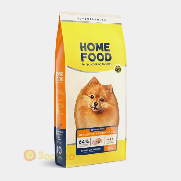Сухий корм Home Food здорова шкіра та блиск вовни для дорослих собак дрібних порід "Індейка та лосось", 10 кг