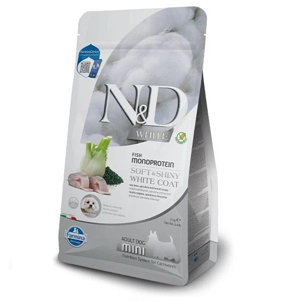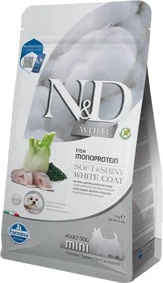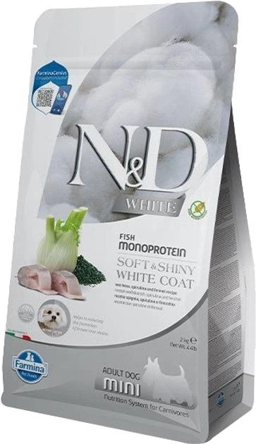 Сухий беззерновий корм Farmina N&D WHITE для собак дрібних порід із білою шерстю з сібасом, спіруліною та фенхелем, 2 кг