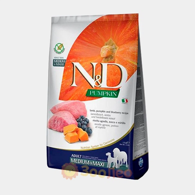 Сухий беззерновий корм Farmina N&D Pumpkin GF Dog Lamb & Blueberry Adult Medium & Maxi для дорослих собак середніх і великих