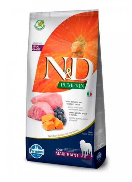 Сухий корм Farmina N&D Pumpkin GF Dog Lamb&Blueberry Adult Giant&Maxi Беззерновий сухий корм з ягням, гарбузом та чорницею д