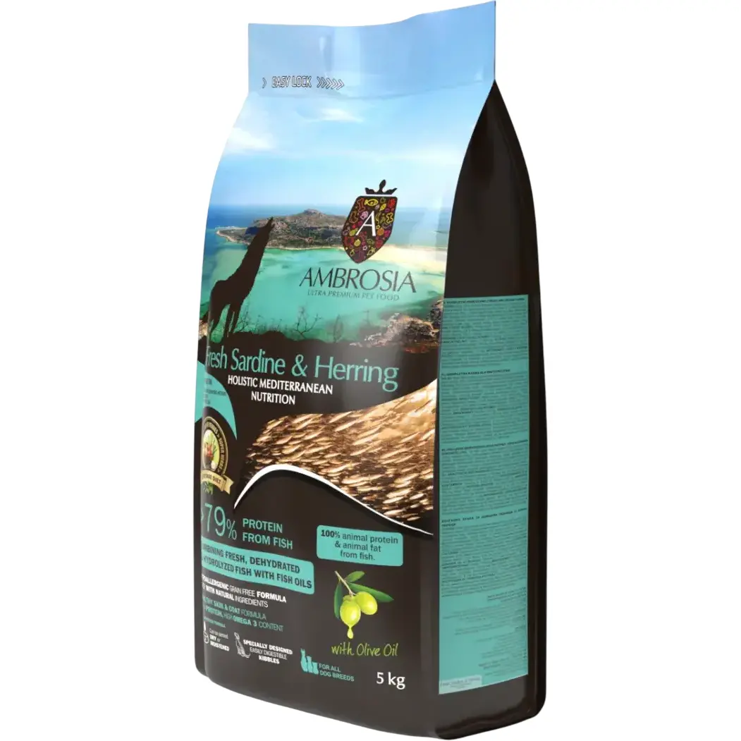 Сухий корм Ambrosia Mediterranean для цуценят усіх порід з сардиною та оселедцем 5 кг