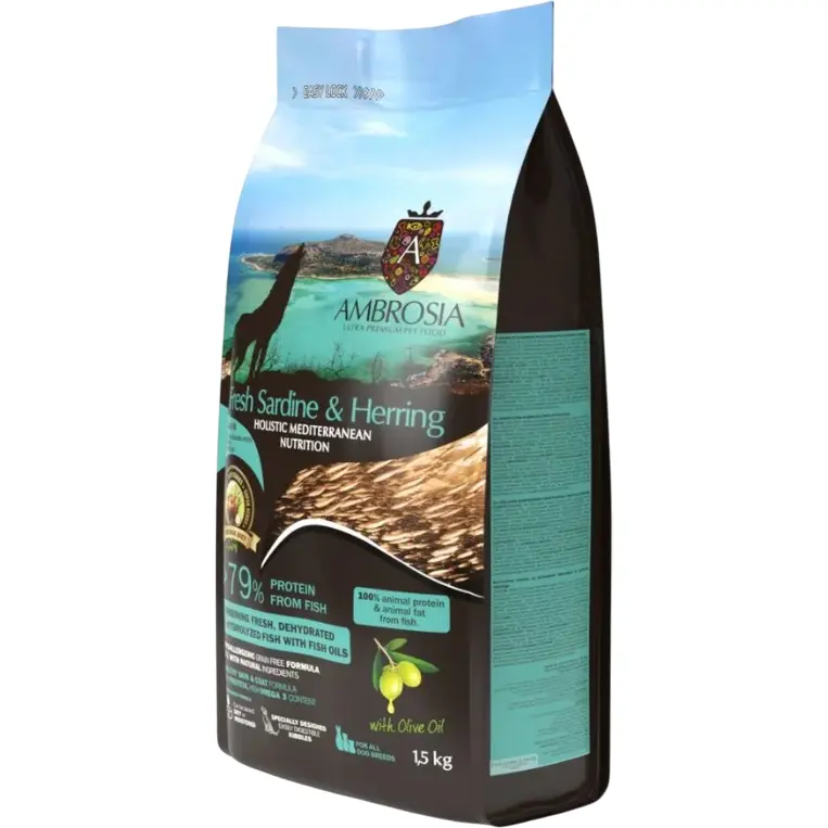 Сухий корм Ambrosia Mediterranean для цуценят усіх порід з сардиною та оселедцем 1.5 кг